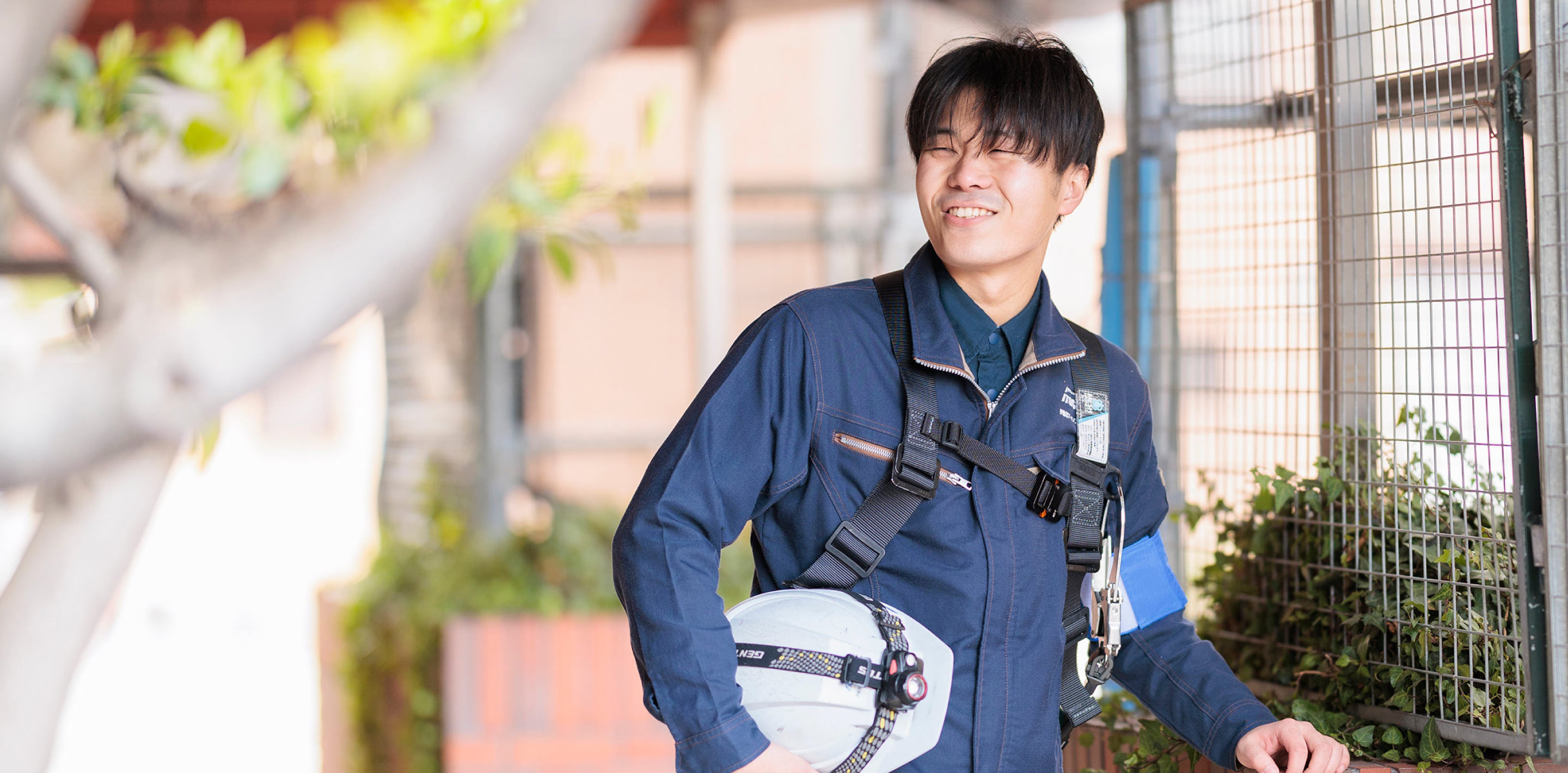 教えてください。分譲マンションの大規模修繕工事の施工管理を担当しています。大規模修繕工事とは建物全体に足場を組んで、外壁などの補修をする工事のことです。エンジニアリング部(工事の企画設計・提案を担う部署)と一緒に修繕内容やスケジュールを決めるところから始まり、着工すると現場に常駐して、工程管理や安全管理、協力施工会社さんへの指示などを行います。居住者の方々の対応も重要な業務の一つで、工事期間中に寄せられるご意見に応えながら、工事をスムーズに進められるようサポートしています。